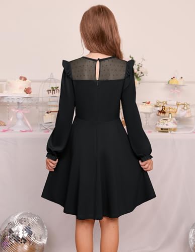 • Girls Party Dress: This girls long sleeve dress features sweet mesh paneling​and a lovely lace flower accent at the chest, creating a charming, standout princess look