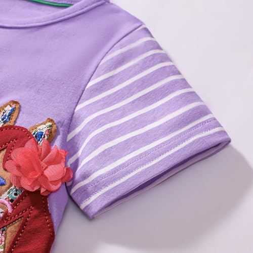 Hongshilian Toddler Girls' Cotton Casual Dress Cartoon Embroidery Applique Basic Short Sleeve Tunic Shirt Dresses 7