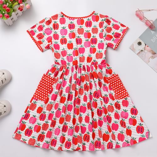 FYMNSI Kids Girls Back to School Dress with Pockets Toddler Little Girl Short Sleeve Crew Neck Summer Casual Dresses 4