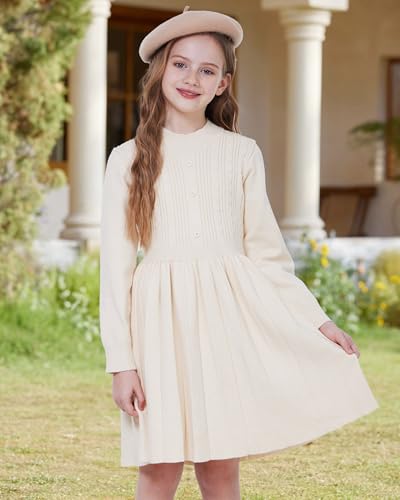 • Fashion Design:The winter dress for girls features a crew neck,long sleeves,button front,and twist knit design;The A-line pleated hem adds a cute and stylish touch to the dress,making it not only fashionable but also comfy and perfect for twirling around