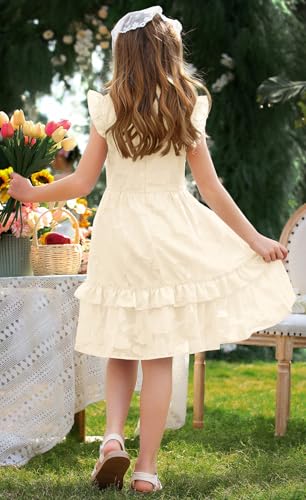 MITILLY Girls Summer Ruffle Dress Elegant Flutter Sleeve A Line Flowy Formal Party Mini Dresses with Pockets 6-13 Years 1