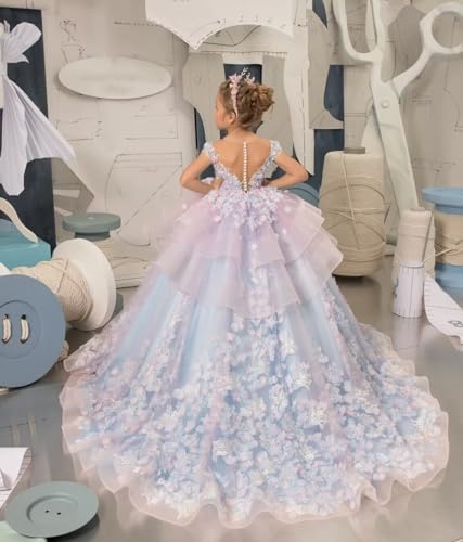 Flower Girl Dress for Wedding Appliques Tulle Princess Pageant Dreses Floor Length Girls Birthday Pageant Tutu Ball Gowns 6