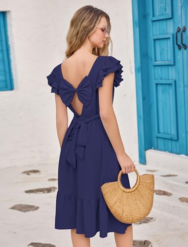AWIBMK Mother Daughter Boho Dress Mommy and Me Summer Casual Holiday Flutter Sleeve V-Back Bowknot A-Line Dresses 4