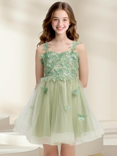 • Fabrics: 3D Butterfly Flower girl dresses for wedding is made of high quality tulle, the full lining is made of comfortable, and breathable fabric. No harm to the child skin, very soft, skin friendly and. Short formal dresses for girls,girls wedding guest dress,3D butterfly lace applique hoco dresses for teens,butterfly tulle kids prom dresses