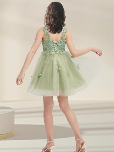 Tulle Short Flower Girl Dresses 3D Butterfly Homecoming Dresses for Teens Lace Applique Formal Dress for Girls 6