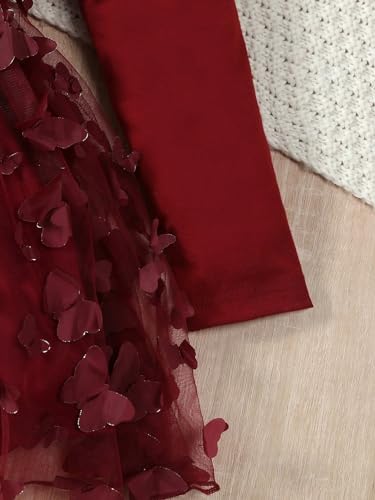 MakeMeChic Girl's Round Neck Long Sleeve Mesh Sheer Butterfly Bow Knot Ruffle Trim Short Dress 6