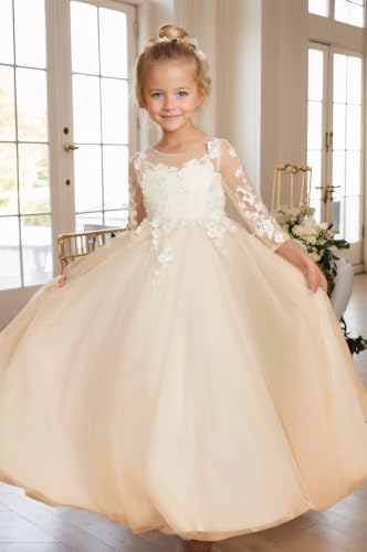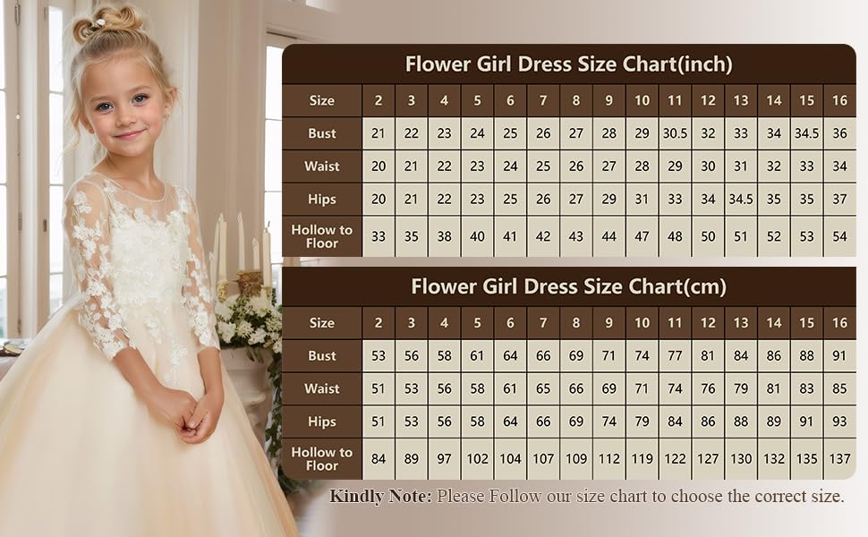 • Flower Girl Dress Features: Tulle Flower Girl Dress,Long Sleeve Junior Bridesmaid Dress, Lace Appliques First Communion Dress, Crew neck party ball gown dress for girls, delicately designed with flower lace appliqued,mesh crewneck and sheer back with floral lace appliques,puffy soft tulle skirt, comes with exquisite button closure, the dress will exactly show your girl's charming demeanor while being easy to fit.