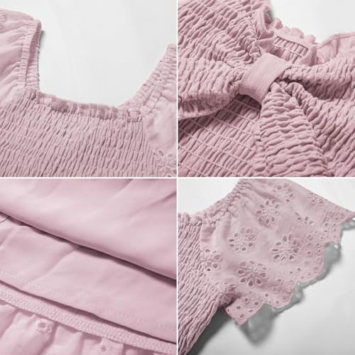 • [COMFORTABLE FIT]Made with a blend of polyester, viscose, and cotton fabrics. The elastic waistline and pull-on closure ensure easy wear and a comfortable fit for active girls.Partially lined skirt provides extra comfort and coverage. The dress is crafted with attention to detail, including delicate eyelet embroidery on the sleeves and hem.