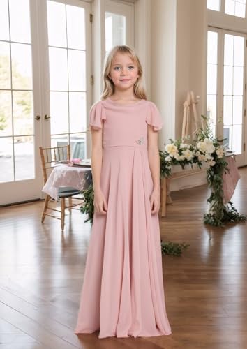 More information about Junior Bridesmaid Dresses for Teen Girls Ruffle Sleeve Chiffon Long Flower Girl Dress for Wedding Party Pageant Gown