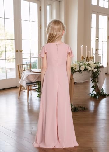 Junior Bridesmaid Dresses for Teen Girls Ruffle Sleeve Chiffon Long Flower Girl Dress for Wedding Party Pageant Gown 4