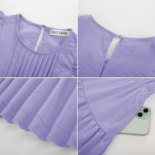 GRACE KARIN Girls Summer Dress Flutter Sleeve Lace A-Line Sundress Casual Elegant Midi Dresses with Pockets for 5-12 Years 6