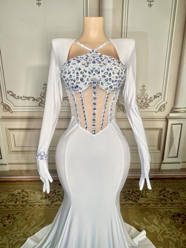 White Satin Crystals Mermaid Prom Evening Wedding Party Dress Celebrity Pageant Wedding Guest Gown Bridal Gown 6