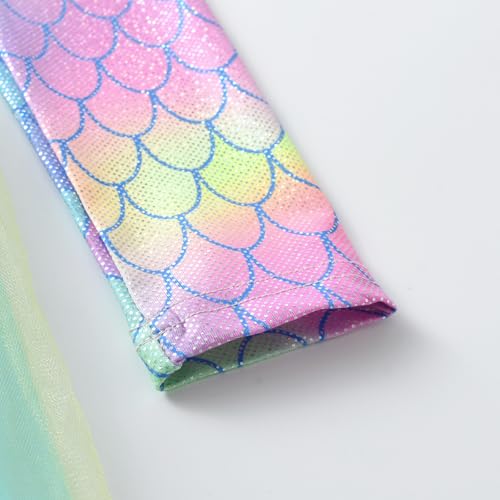 VIKITA Girls Rainbow Mermaid Tutu Dress Long Sleeve Sparkling Scales Party Tulle Princess Dresses for 3-10 Years 4