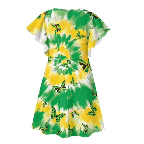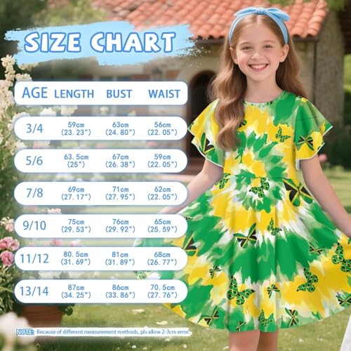 Girls Dresses - Ruffle Summer Dress Flutter Sleeves Round Neck Size 3-14 Years Casual Sundress 6