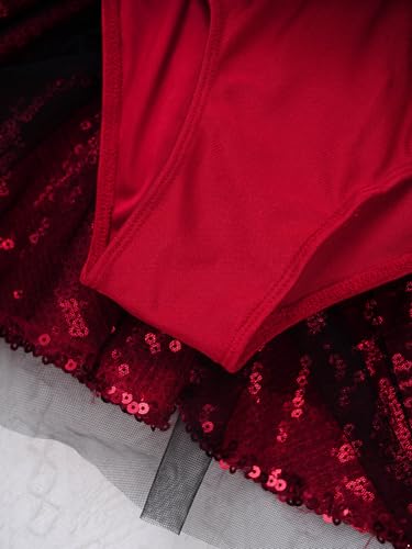 2Pcs Girls Circus Ringmaster Outfit Sleeveless Sequins Tutu Dress with Headwear for Performance 5