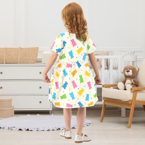 Girls Summer Short Sleeve Dresses Kids Twirl A Line Dress 2-8Years 4