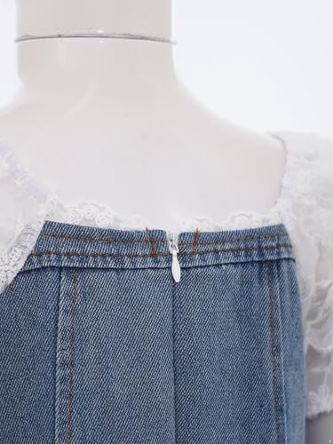 More information about YiZYiF Kids Girls Summer Denim Dress Square Neck Lace School Outfits Pearl Decorated Casual Playwear