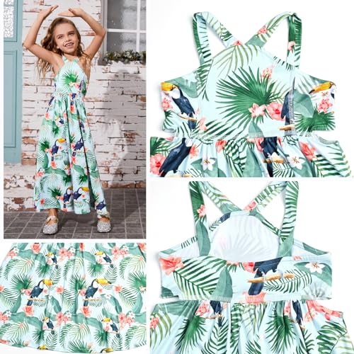 Perfashion Girl's Maxi Long Dress Summer Casual Spaghetti Strap Sleeveless A Line Side Cutouts Sundress for 6-15 Years 2