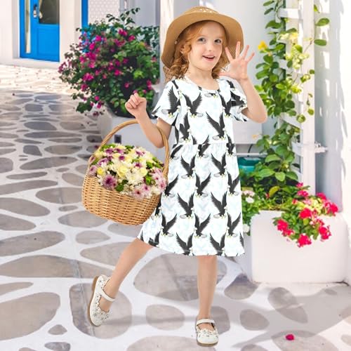 CaTaKu Girls Eagles Birds Dresses Toddler Summer Dress Short Sleeve Dresses for Girls Sundress 2-8T 2