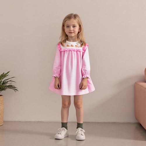 More information about Girls' Dog Embroidery Mini Dress Long Sleeve Fall Striped A-Line Daily Toddler Dress Cute Casual Kids' Dress