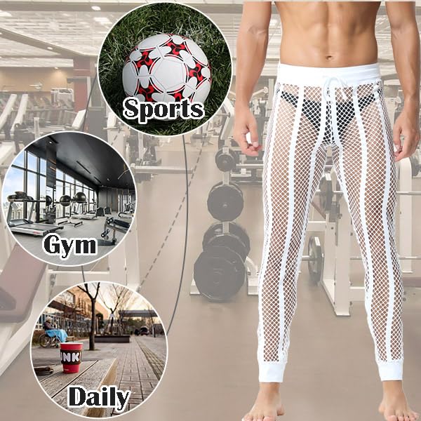 • Men's mesh trousers, made of high-quality fabric, see-through mesh, full of elasticity, sexy and breathable to wear.