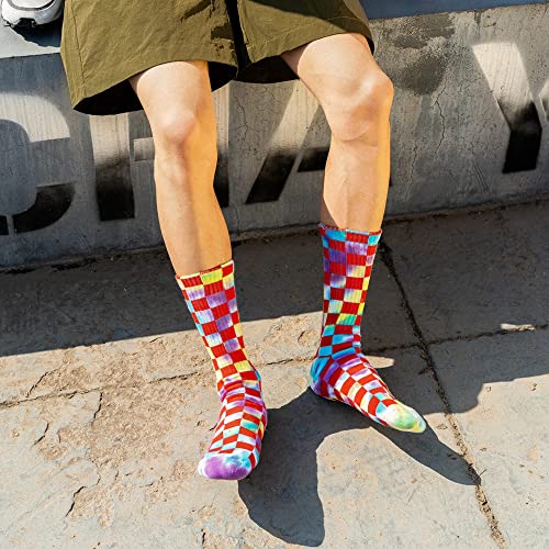Novelty Tie Dye Grid Skateboard Casual Crew Socks Unisex 6