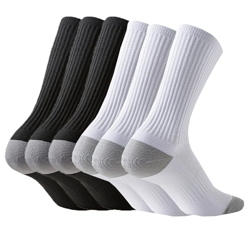 Men's Moisture-Wicking Towel-sole Mid-calf Socks, Black/White, Anti-Friction, 85% Polyester+15% Spandex, 1 Pair, One Size 6