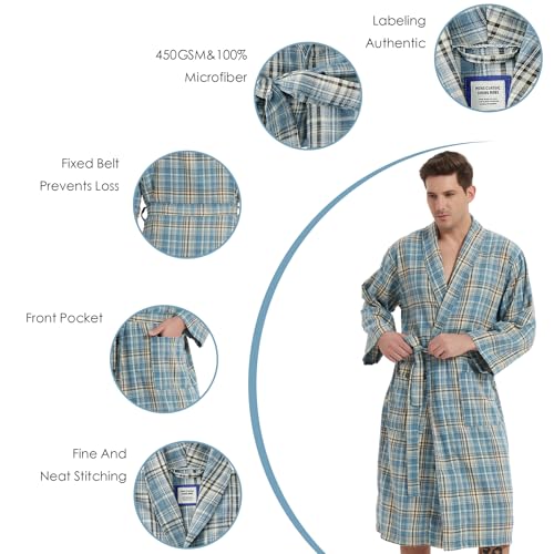 • Microfiber Flannel Robe: Our mens bathrobe is made of microfiber flannel, its soft fabric is perfect for lounging and relaxing after a long day of work.A classic plaid pattern gives this men's bathrobe a unique and eye-catching look. Medium weight, not too thick or heavy, comfortable to wear all year round for lounging and sleeping.