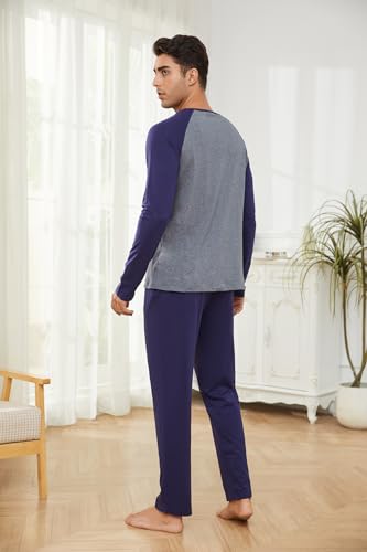 Men's Pajama Set 100% Cotton Mens Pjs Sets Long Sleeve T-Shirts and Pants Sleepwear Lightweight Soft Loungewear 3