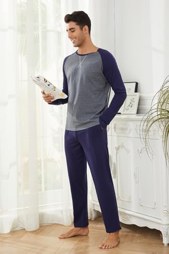 Men's Pajama Set 100% Cotton Mens Pjs Sets Long Sleeve T-Shirts and Pants Sleepwear Lightweight Soft Loungewear 5