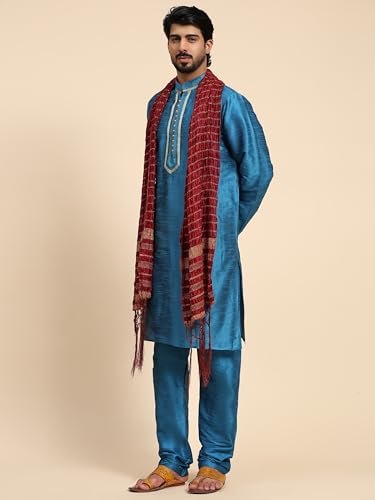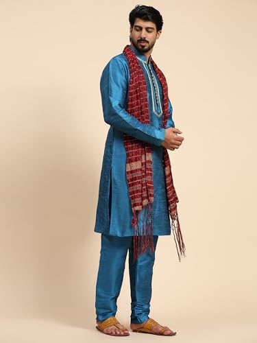 SKAVIJ Men's Art Silk Ethnic Kurta Pajama and Scarf Suit Festivals Season Party Dress Set 5