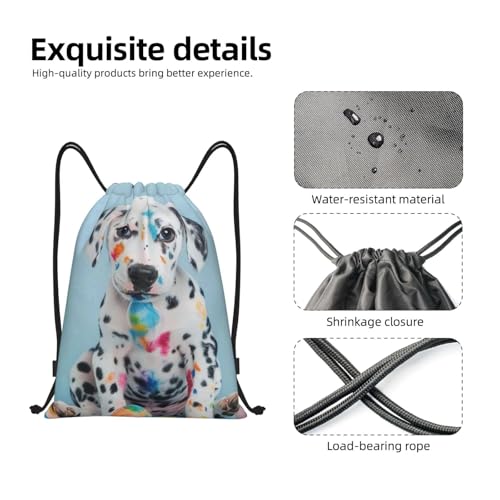 Funny Little Dalmatian Puppy Pattern Drawstring Backpack Bag - Sports Gym Sack For Women Men 1