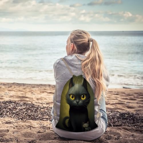 HOT ! Black Cartoon Cat with Yellow Eyes Drawstring Backpack Canvas String Bag Lightweight Sports Gym Bag for Men Women