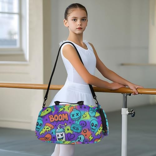 HOT ! Street Graffiti Vector Patterns Boy's Gym Duffel Bag with Shoes Compartment Large Capacity Carry on Luggage for Travel, Sports, Duffel, Weekender