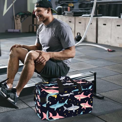 Foldable Travel Duffel Bags for Men and Women, Waterproof Weekender Overnight Gym Bags, Cartoon Sharks 3