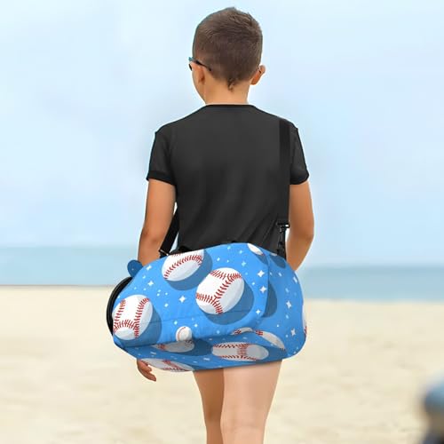 Gym Travel Duffle Bag for Boys Girls White Baseball Blue Pattern Sports Dance Bag with Shoe Compartment & Wet Pocket Football Kids Travel Bag Teens Sleepover Carry 5