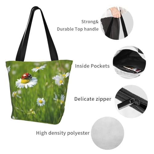 • High-Density Polyester Fabric: Crafted from high-density tear-resistant polyester fabric with a 2mm foam lining, this Ladybug Daisy Print tote bag offers enhanced thickness and protection for your belongings for long-term use in various settings.