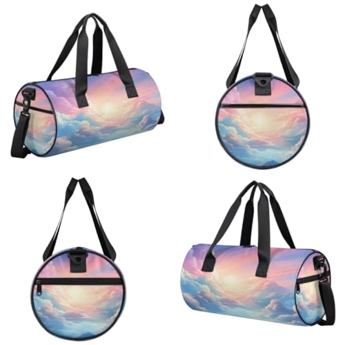Colorful Skies Round Barrel Sports Fitness Bag, Travel Luggage Bag, Reusable Handbag, Suitable For Men and Women 4