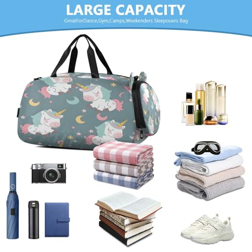 HOT ! Gym Travel Duffle Bag for Boys Girls Unicorn Star Moon Pattern Sports Dance Bag with Shoe Compartment & Wet Pocket Football Kids Travel Bag Teens Sleepover Carry