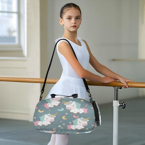 Gym Travel Duffle Bag for Boys Girls Unicorn Star Moon Pattern Sports Dance Bag with Shoe Compartment & Wet Pocket Football Kids Travel Bag Teens Sleepover Carry 6