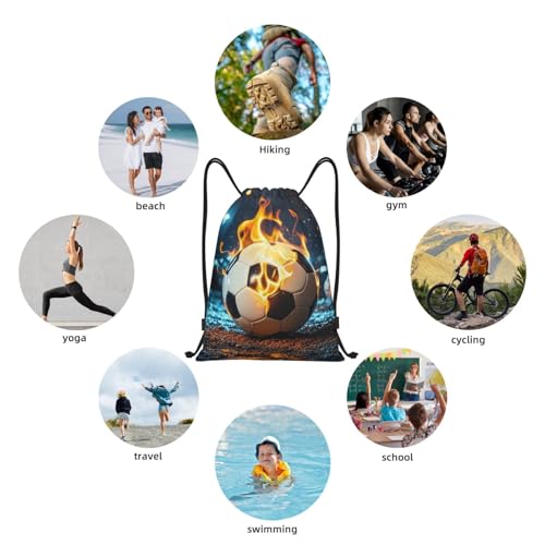 • Excellent Material: Burning Soccer Ball Drawstring backpack for sports measuring 19.6 x 16.5 inches, allowing you to carry various items in an organized manner to meet your needs for different occasions. Storage bags for sports is made quality 600d encryted water-resistant polyester with sturdy lining