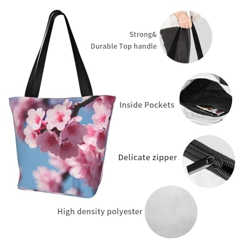 • High-Density Fabric: Made from high-density tear-resistant polyester with a 2mm foam lining, this Cherry Blossoms Print tote bag ensures long-lasting use and protects your belongings from bumps and scratches.