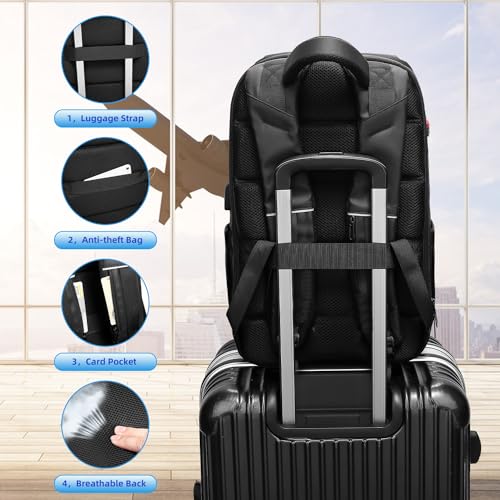 Laptop Backpack for Men,Multifunction Business 15.6 inch Laptop Backpack,with USB Charging Port Travel Bag, Black-03, Large 4