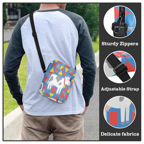 messenger bag cute mens crossbody bag small Purse Bag Adjustable Strap for business business- Geometric Cow White 7