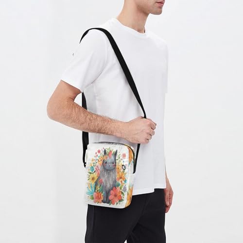 mens messenger bag Shoulder Bag For Woman Casual Purse Cross Body Adjustable Strap for work work - Cats Flowers Colorful 1