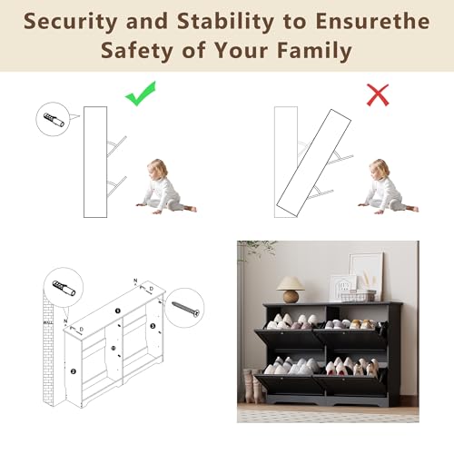 • Durable Construction with Anti-Tip Design: Built with strong engineered wood and a wear-resistant finish, this shoe storage cabinet stands sturdy and comes with an anti-tip wall anchor for added security, making it ideal for homes with children or pets.