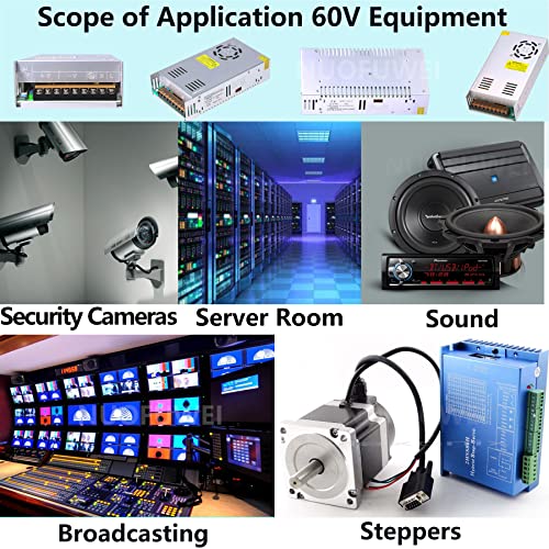 • 【USED WIDELY】DC 60V Power Used for Semiconductor drive, Amplifier, Radios, LED Light Strip, CCTV Camera System, Car Jack, Electronic Devices,Automation Equipment and more 60V Device. NOTE:Not suitable for charging Battery,Speed Control Motors.