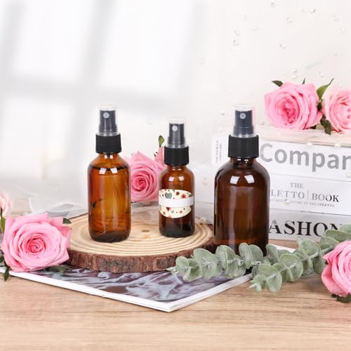 EkkoVla 24 Pack 1 oz Amber Spray Bottles with Fine Mist Sprayer, 30 ml Glass Travel Bottles for Cosmetic Essential Oils Cleaning Solutions Perfumes and Liquids 3