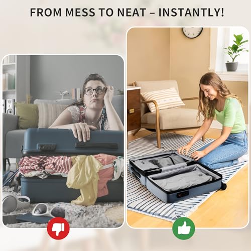 • 4 Set Packing Luggage Organizer: Compared to regular compression packing cubes, these upgraded vacuum compression bags boast superior vacuum compression capabilities. Utilizing advanced 40DTPU nylon environmentally friendly waterproof fabric, they offer exceptional durability and abrasion resistance