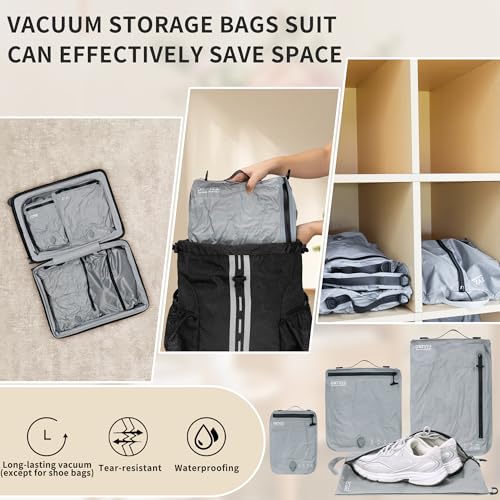 ONTYZZ 4 Set Vacuum Bags Organizer Suitcase Packing Luggage with IPX8 Waterproof Zipper Travel Vacuum Compression Bags Durable Seal Space Saver Bags for Travel Accessories, Grey (No Pump) 6